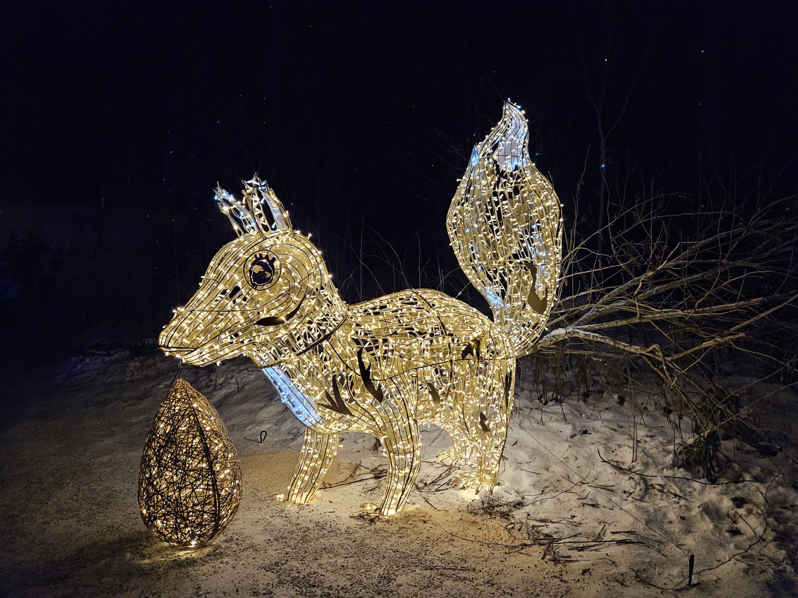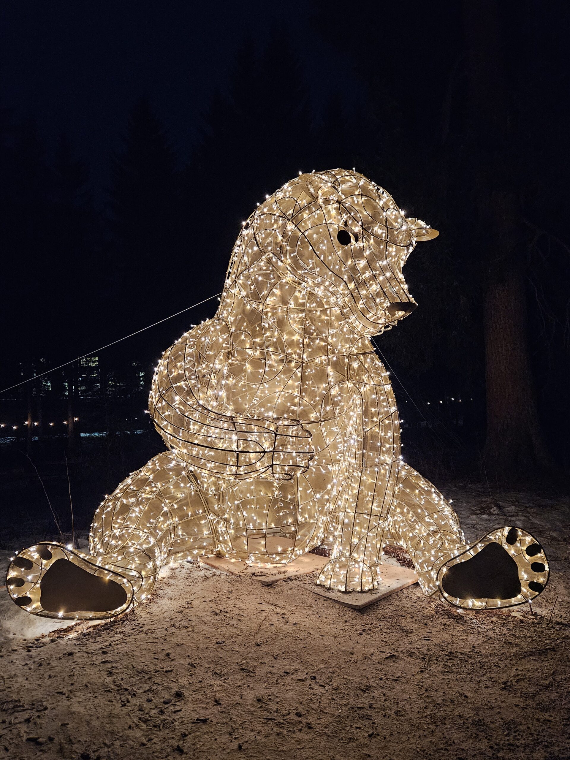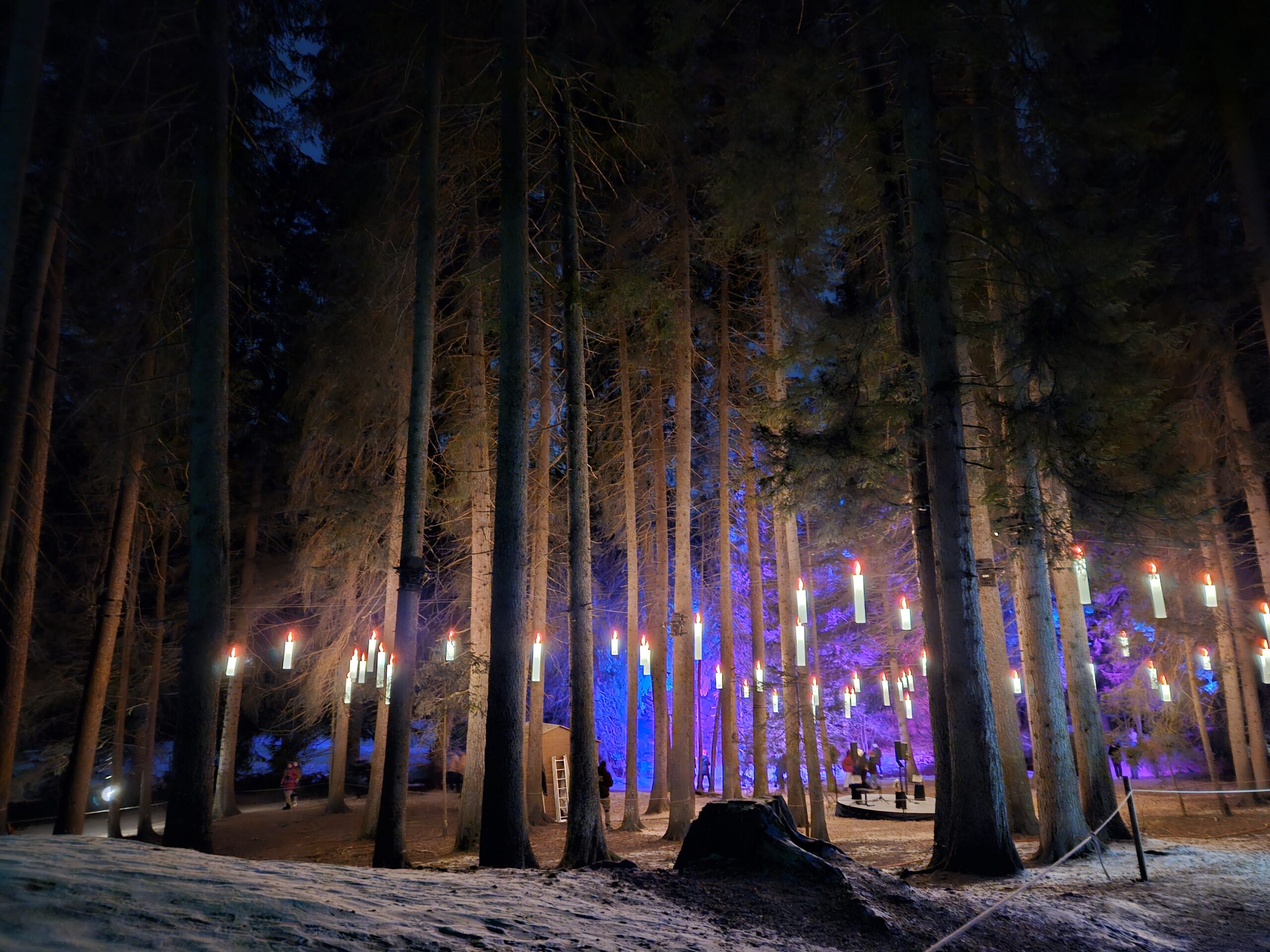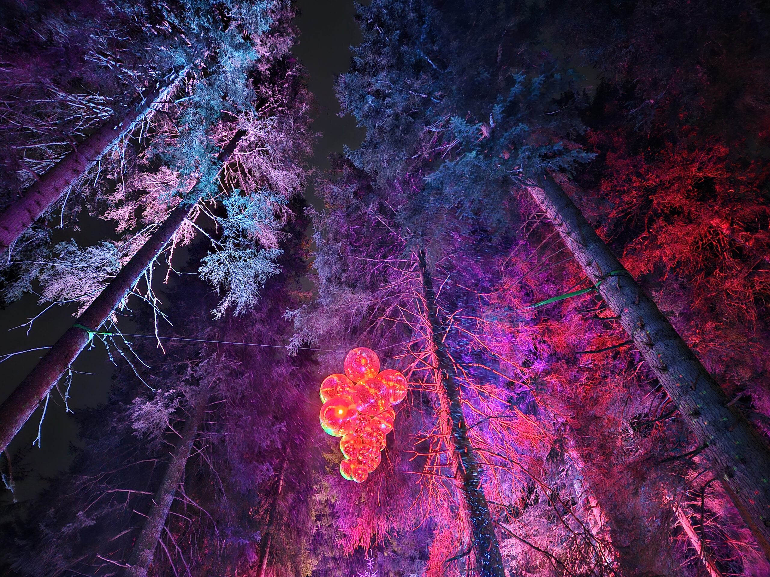 Trotz der klaren, kalten Luft und der Schneedecke war die Stimmung warm und fröhlich: Beim Spaziergang durch den Zauberwald wurden wir von spektakulären Lichtinstallationen begleitet, die den Wald in magisches Licht tauchten. Besonders eindrucksvoll waren die künstlerisch gestalteten Lichtobjekte und kreativen Figuren entlang des Wegs, die eine zauberhafte Atmosphäre erzeugten.